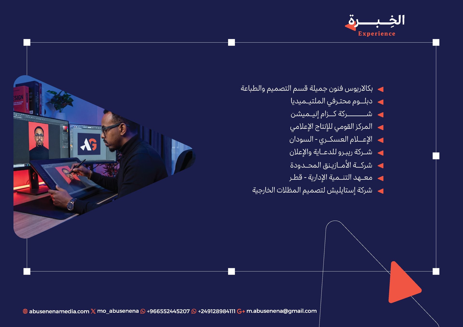 فنــان تشكيـــلي ومتــخصـص في تـقديــم خـدمــات الدعـــاية والإعــلان ، تصميــم المواقع الإلكترونية، التصوير الإحترافي ومونتاج الفيديو ، الجرافيـك ديزاين ، أسعى لتحويل الأفكار إلى مشروعــــات ناجحة تُعبّر عن هويـتهم بشكل مبتكر .